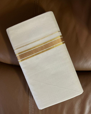A perfect gifting option, this elegant handloom product features classic gold accents on a crisp white base. It embodies luxury and thoughtfulness, making it a valued gift for family, friends, or colleagues for any occasion.